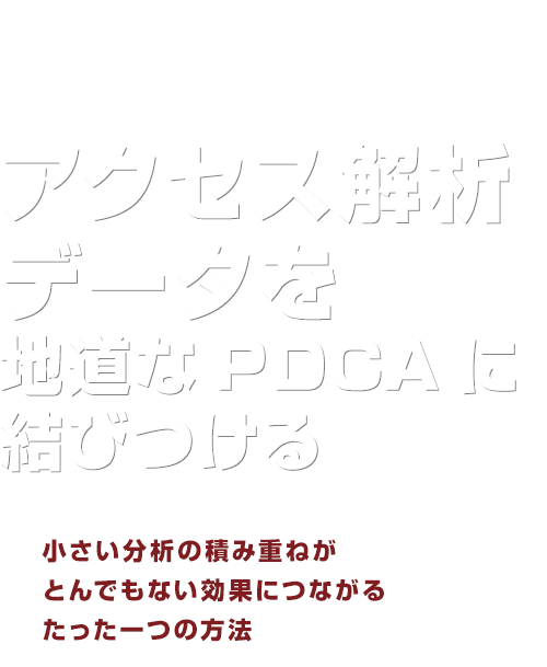 まずは、問題点からの仮設にプライオリティ(優先順位)をつけ、PDCAをしっかり回す体制を一緒に構築していきます。そのために、毎月サイト内の実績レポートを作成して、ご提案に伺います。